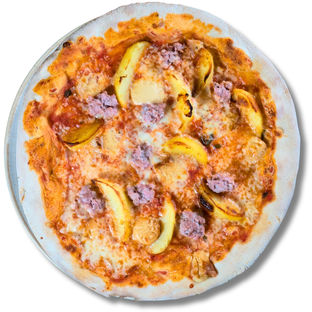 Pomodoro, mozzarella, patate arrosto, salsiccia, provola